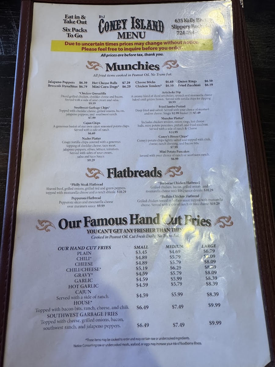 B&J Coney Island Menu